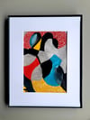 This series is about simply creating without rules. It is an exploration of the use of different forms, colors, and media. This original art is in an 8"x10" frame; acrylic, ink, and diamond dust on canvas paper.